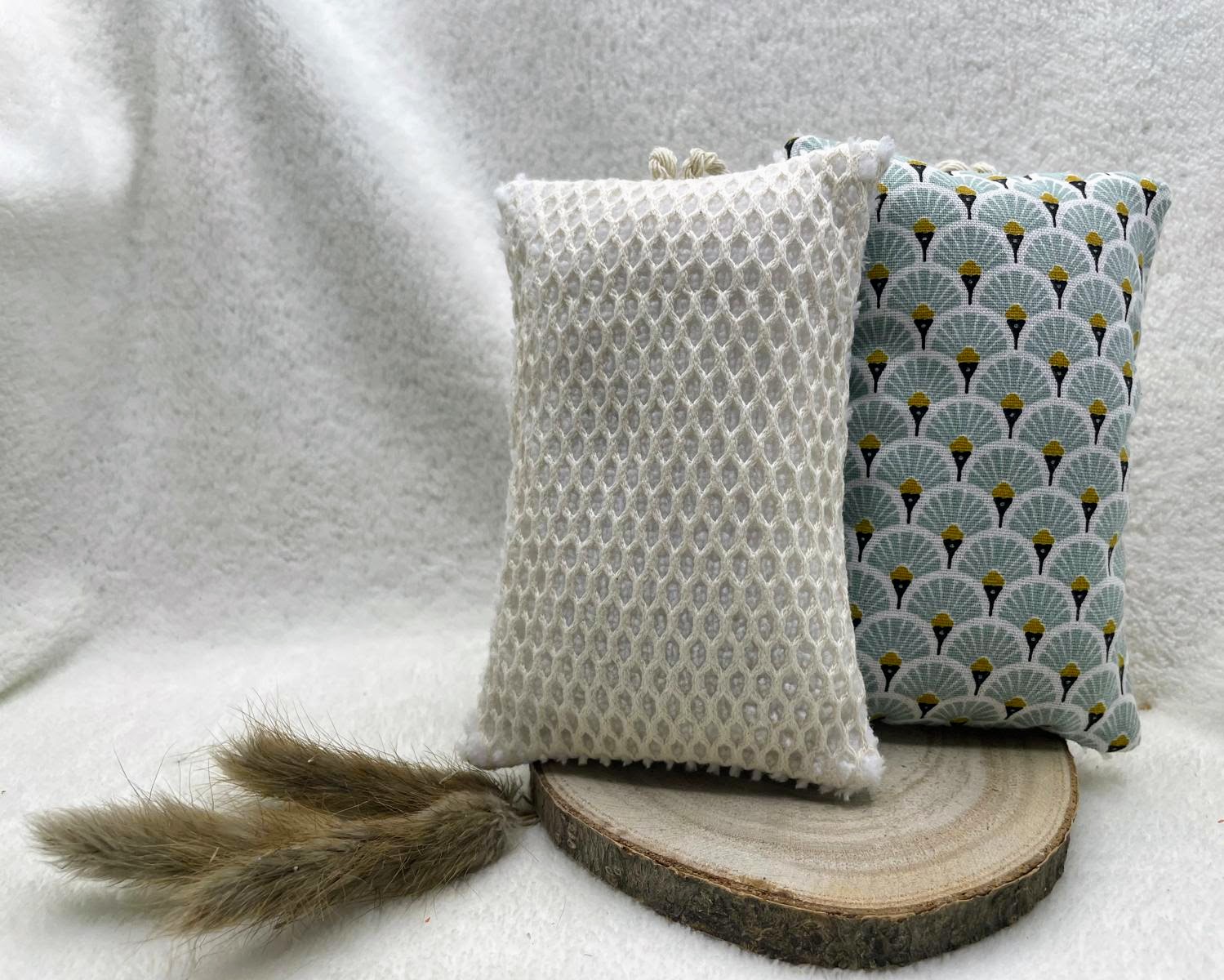 L’intérieur est garni de kapok, une fibre végétale naturellement imputrescible, reconnue pour sa légèreté et sa capacité à ne pas retenir l’humidité. Cette matière offre une éponge plus hygiénique, durable et agréable à manipuler, même au fil des lavages.